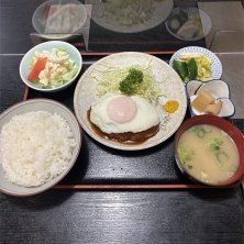 大森駅前の揚げ物メインの洋食屋『ハチロー』。 注文はハンバーグ定食、柔らかめのハンバーグに目玉焼きがトッピングされてます。デミソースは酸味控えめの優しいソースです。 ハンバーグ定食 1,400円