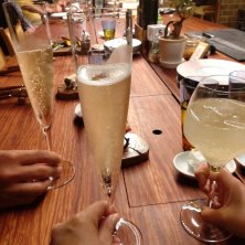 3/31☆昨日のかんぱーい! 少し早いけどわたしの誕生日ディナー!大人二人はシャンパーニュ、ちび姫はレモネードで。ずっと気になりつつ行けずにいたお店、サラダ王子が予約しておいてくれました。いつもありがとう!