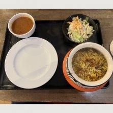 ビリヤニランチセット1100円 壺に入ったチキンビリヤニとカレー一つミニサラダとドリンクのセット ビリヤニはスパイス感よりダシ感の方が立つ ふわっとやわらかタイプでチキンの手羽部分が入ってた カレーはマトンにしたところトマト感強くておいしい 全体的に優しい味わい そういえば昔六本木の支店にも行ったなあ