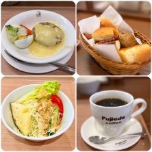 本日はカフェランチ🍽 2023年、初出勤❗️オランダ屋さんへ✨ 和風ソースのハンバーグランチを頂きました❣️ コーヒー☕️が美味しく❗️ パン🍞🥐🥖が食べ放題❗️ デザート🍨迄付いて、¥1130-安❗️👌👍