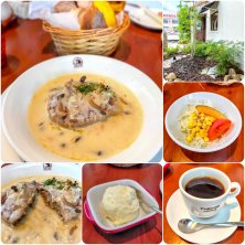 本日のカフェランチ🍽️ トマト煮込のハンバーグランチ✨ サラダ🥗 パン食べ放題🍞🥖🥐🥪 コーヒー☕️ ¥1,130(税込)😳