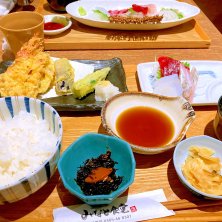 干物と刺身三点盛り定食 鯵干物、マグロ、カンパチ、マゴチ