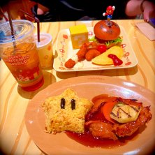 キノピオカフェの、てりやきチキンとスーパースターライス。ぎりぎり食べられるかな というおいしくなさ!