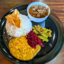 東京都新宿区、面影橋、西早稲田エリアにある四次元食堂でミールス@1500円(税込)。カレーはチキン、モロヘイヤにしました。 SNSなどで見かけるたび、いつ行こうかなぁと考えていたお店。この日’今日しかない’と思って訪問。 この美しい配膳、なんとも魅力的です。ほどよい辛さのチキンカレーもいいのですが、モロヘイヤのカレーがなんだか不思議な食感と味わいでとても好み。 サンバルとラッサムも美味しいし、ライスは2種類さらにワダもついてボリューム的にも最高です。