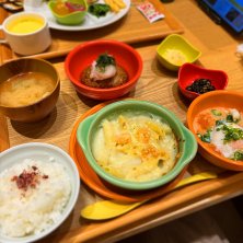 朝ごはん食べない生活が続いてますが、ホテルの朝食がついていたので来てみました。 和カフェモーニングとやらで、出汁茶漬をチョイス。おかずやサラダはビュッフェ。 すかいらーく系のカフェとあとで知る。
