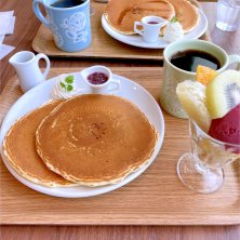 ◉サマー桃🍑パンケーキ (((o(*゚▽゚*)o)))♡ 美味すぎるやーつ❣️ 桃🍑の果肉がジューシー美味しい。 甘さ控えめ生クリーム バニラアイス 桃のジュレ オリーブオイルと岩塩がかかったチーズクリームアイスをパンケーキにかけていただきます‼️ パンケーキ🥞は薄手ですが、ふんわり3枚。 プラス250円でドリンク付けれます。 アールグレイか、フレーバーティー選べます。 本日は桃のフレーバーティー 桃のパンケーキにベストマッチ❣️ なかなかのヒットでございました‼️