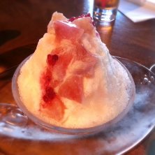 ピーチベリーミルク ミルクにほんのりシナモンの風味かな? 高級感のあるかき氷♪