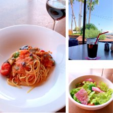 窓辺の素敵なお席で 海を眺めながら ホット一息♡꒰ ¨̮͚ ꒱♩♩◦. 秋らしい さんまと茄子のパスタ🍷