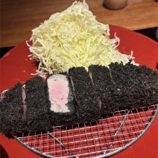 都立大学駅前のとんかつ屋『さつまやとんとん』。 注文は六白黒豚のロース、竹炭を練り込んだパン粉から作った衣は真っ黒。お肉もジューシーですが、値段も高めで、味もそれなりです。 黒とん ロース 3,000円