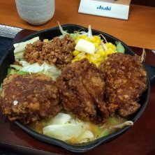 にんにく味噌バター定食 スープに浸して食べると、いつもと違ったカラ揚げの食べ方ができます。 味噌バターラーメンにカラ揚げを浸すと、こんな感じになるかも。 こんど、ラーメン屋で試してみるかな。