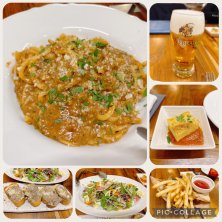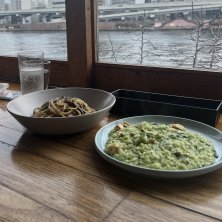 隅田川沿いでランチ 牛肉のラグーオイルパスタ 的な