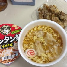 マルちゃん 麺乃助 ワンタン麺 中華そば 98円税抜 366kcal P8.9g F18.5g C41.0g Na4.8g 舞茸天 226円 320kcal P2.9g F24.4g C21.6g Na0.2g 少し足りないくらいがイイんだよ 旨旨!
