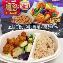 ニップン 冷凍食品 五目ご飯と鶏と野菜の黒酢あん 428円税抜 421kcal 蛋白質 15.3g 炭水化物 57.6g かなり満足度高い トップバリューにも同等品あるけどおかずの量が全然違う 旨旨!