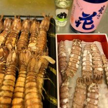 お取り寄せグルメで、金華山沖の子持ちシャコ! 合わせるのは佐久の花。 グラスはNZのテカポ湖。 すごいコラボ