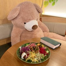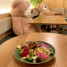 【KEGOMACHI COMMONの地中海式ブッダボール】 #お肉 新規開拓でお昼ごはん〜♪ (๑◕ˇڡˇ◕๑) ブッダボウルやけど、お肉かお魚のメインが付いてた! くまさん🧸でしっかりとソーシャルディスタンスがとれてんね〜♪ #新規開拓 #地中海式ブッダボール #ブッダボール #地中海式ブッダボウル #ブッダボウル #菜食丼 #ケゴマチコモン #福岡カフェ巡り #buddhabowl #kegomachicommon #cafe