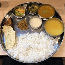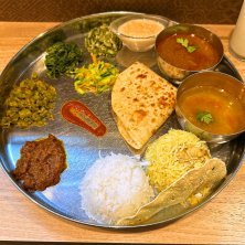 2023.8.19 神田カレー街スタンプラリー その3 ベンガル料理 トルカリ ドス・ミシャリー・セット こちらは東インド〜バングラデシュ方面(ベンガル地方)の料理のお店で、初訪問。南インド〜スリランカ料理を好む方ならだいたいベンガル料理も好きなはず! 味は違うけど見た目がネパールのダルバートに似てる気がします。パパドが付いているところは南インドっぽい! また新たな扉を開いた気がします…!