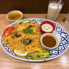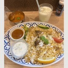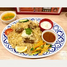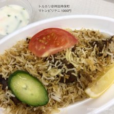 神田カレー街食べ歩きスタンプラリー2024 45店舗目 ベンガル料理トルカリ(神保町)にて マトンビリヤニ 1550円 どこかで見た「駐日インド大使館職員が美味しいと思う東京のビリヤニ」に選ばれている店です。 軽やかなビリヤニは絶品!ビリヤニって食べ進めるうちに飽きてきて味変しながら完食するパターンが多いのですが、こちらはライスが本当に美味しくて味変しないで食べ尽くすところでした😂 ここの変わり種はライタが一般的なライタと違って甘いところです!でも美味しいんだ🤤