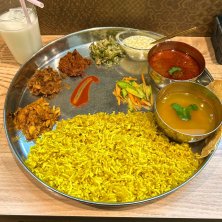 神田カレー街食べ歩きスタンプラリー2025 34/151 ベンガル料理トルカリ(神保町) ボルタ・バジ・キチュリ 1450円 ここも大好きな店、諸事情で訪問が遅くなりましたがスタンプラリーで行かない理由がありません! 黄色いごはんは豆が入ったキチュリ、左から時計回りで本日のボルタ3種、野菜バジ、激甘デザート、ムルガトルカリ(チキンカレー)、豆のスープ めちゃ美味ー!(そしてかなり辛い!)インドとは近いけれどまた違った感じの料理、この独特さがたまりません。クセも強め!それがいい!