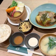 【みのりカフェの本日の白身魚と採れたて野菜の揚げびたし定食】 #まとうだい #なす #ズッキーニ #甘太くん #10種の蒸し野菜 JAのカフェで野菜たっぷりのお昼ごはん〜♪ 蒸し野菜は、椎茸、もものすけ、カリフラワー、にんじん、紅はるか、白菜、ズッキーニ、キャベツ、大根、かつお菜で、お米は福岡産の元気つくし! #伊都菜彩 #ja糸島 #白身魚と採れたて野菜の揚げびたし #カフェ #カフェめし #みのりカフェ #アミュプラザ博多 #福岡カフェ巡り #cafe #minoricafe