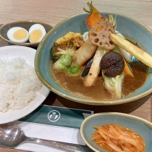 【『採れたて』『大きめカット』揚げ野菜スープカレー】 #揚げ野菜 #海老スープ #5辛 #中盛 #ゆで玉子 #野菜3種類プラス 博多地下のカフェで野菜たっぷりのお昼ごはん〜♪ #採れたて野菜のスープカレー #揚げ野菜スープカレー #カレー #カフェ #カフェめし #みのりカフェ #アミュプラザ博多 #福岡カフェ巡り #soupcurry #vegetablecurry #curry #cafe #minoricafe #hakata
