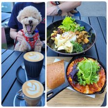 今日は、とてもよい天気☀️ 外でランチが気持ちいい🐶