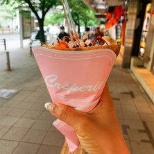 友達から聞いてかけつけたクレープ屋さん🍓 すんごいボリュームで生地がモチモチ🤎 生クリームたっぷりで美味しかった😍 これ2回目に食べた時の写真なんだけど、1ヶ月もあいてない🤭笑 そんくらいリピート確定な味でした🥺