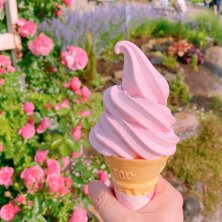 薔薇🌹ソフトクリーム🍦 今日も夏みたいで☀️洗濯したりしてたら出掛けるのが遅くなり、肉そば屋 https://miil.me/p/k6kmo 出て薔薇園着いたら後30分でアイスクリームショップは閉店時間💦 迷ったけどこの前🍨食べられなかったから、食べる事に。期間限定🌹薔薇ソフトクリームというメニューを発見👀この時期は白い🍦は無いです、とあったので今回はこれを食べてみた。 う〜ん、薔薇の香りしてるのかな?🍦自体は濃厚だった。 こちらはアイスクリーム🍨の方が美味しいかも🤭