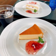 ケーキセット🍰休日のサイクリング①2024.9.29 先日の日曜日、私は去年の10月以来に😅ロードバイク乗った🚴♀️せんだい農業園芸センターの薔薇園🌹を見に行った。センター内のカフェテリア?にランチあるらしく、パスタ🍝食べるつもりで行ったのだけど、14:00頃にはもう完売💦あまりにお腹も空いていたし、周りに何も無いので食べた。 私👩ベイクドチーズケーキ オット👨苺のアイスケーキ→凍らせてあるケーキを解凍した物だった💦 この後、薔薇園🌹を中心に園内を散策した。続く。