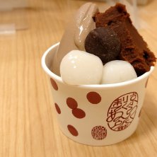いつもの阪急地下のあんこ屋さんにて 季節のあんは、京都のbean to barチョコブランドのDari Kのショコラあん✨しかもオレンジピール入ってる! あんこのソフトとめちゃ合う〜😍 白玉と並んで乗っかってるのは、同じくダリケーのカカオ78%のチョコ。 なんだかいつもよりオトクな感じがする