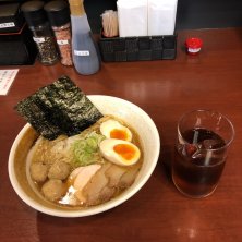 今日の昼飯。新店國禄商店の特製あご出汁鶏そば(醤油)黒烏龍茶(無料)写真にはないけどこの後出てきたあご出汁おにぎり(無料)ランチタイムは黒烏龍茶とあご出汁おにぎりは無料です✌️