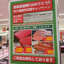 女子プロゴルファー 佐久間選手 優勝応援キャンペーンやっております。 うなぎの安いのは見当たらなかったです。 鮭を買いました😊