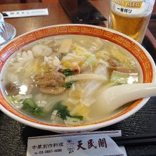 海鮮ラーメン880円。 ザーサイ、半チャーハン、杏仁豆腐もついたセット。 食べきれなさそうだったので半チャーハンは無しにしました。 個人的飲食店応援キャンペーン中のため、ビール付き。 ごちそうさまでした。