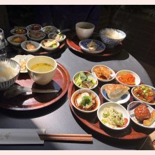 昨夜急遽決まったランチ会(リベンジ) 今回こそはと大雨の中朝から向かいのカフェで 張り込みしてオープン15分前に並んで入店 笑 お店も綺麗だし美味しくてよかった! がしかーし小食の私ですら少なかった 笑 写真じゃわからないけど本当に小さい小さい豆皿に 一口程度って感じで精進料理なの?って思った 笑 そう思うと割高に感じるかも&定食の方が よかったかもねって感じでした。 他の定食も食べてみたいなー これは数量限定のおばんざいプレートです。
