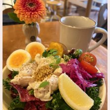 サラダボウル🥗🥣 ハニーチキンマスタードに卵や揚げたてポテト等具沢山のサラダボウル、パンが無くてもお腹いっぱいになります✨