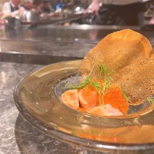 仕事関係のお世話になってる社長のお誕生日会 ってことで鉄板焼きコースランチ …もう1人の社長が全額お出ししてくれたので、お値段は知らないまま過ごそうと思ってる ヒレとサーロインの食べ比べで、どっちかが近江牛、どっちかが宮崎牛とのことでした