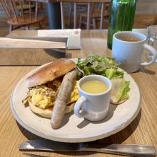 モーニング ◎とろけるチーズと放牧牧草飼育牛のチリビーンズトースト 前から気になっていたこのメニューを食べてみました。 パンはふかふか分厚く(もうちょっと焼いて欲しかったけど)、チリビーンズとチーズが濃厚でとても美味しい。 味変でサルサをのせて爽やか。 朝はこちらでゆっくりさせてもらいましたー ごちそうさまでした♡