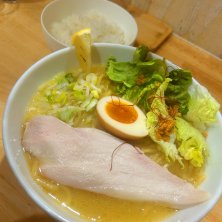 自由が丘の鶏白湯ラーメンのお店『トクベツ。』。 クリーミーな鶏白湯スープに中太麺のラーメン、トッピングは鶏チャーシュー・煮玉子・サニーレタス。卓上のブラックペッパーでパンチを効かせて頂きます。途中からレモンを絞って味変して完食です。 特製鶏白湯麺 980円