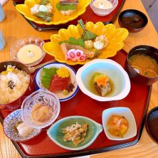 月一夫とのランチデート 3月はお雛御膳 またもや盛りだくさん🥰 デザートは桃まん 焼き物はサーモンに菜の花 3色団子🍡と 菱餅に見立てたチーズケーキ 里芋の田楽に酢蓮根 そら豆と百合根?の蒸物 胡麻豆腐はいくらとグリンピース お造りはイカと甘エビ 大豆と海苔の和え物 お澄まし ちらし寿司 イカの塩辛と卯の花