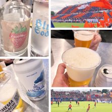 10/18藤枝戦後の打ち上げはシャチさんで 14時キックオフになったのでお久しゅうのメンバーと🍻 苺のクラフト焼酎なかなかイケます🍓 応援してる選手のゲーフラ掲げてるんだけど🏳️ ͗ ͗ 試合前の練習時にサインボール投入れの儀式であーし目がけて投げてくれたっ!(多分…) でキャッチしようとしたら体勢崩して前列の椅子に脛をぶつけて取り損ねる……トホホ( ×ω× ;) ボールは後ろの新規らしい若い男子が取って大変喜んでおられたので次からも観戦に来るようお頼み申す⚽️