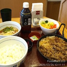 牛カルビ定食の小うどん変更と黒烏龍茶で\おひるだー/