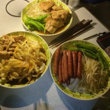 10月11日の晩御飯 豚汁 ご飯 豚焼き肉 つまりポークを使った豚汁と焼き肉 キャンプ飯最高ですよ〜