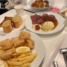 父親のお見舞いの帰りにIKEAで夕食です。 今日からリハビリ開始です💦 ローストビーフです❣️ サーモンと何ちゃらスープ⁉️