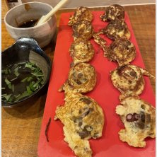 明石焼き❣️デラックス‼️ 蛸・こんにゃく・しそなどが入っています❣️ 崩れやすくて食べるのが大変だった💦😅