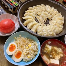 ☆黒餃子 ☆もずく酢スープ ☆もやしナムル ☆和風コールスロー ☆トマト 今日は残業&暑さ&半額セールで ニンニクマシマシ餃子🥟を買いに 走りました🚗 元気出すぞ〜