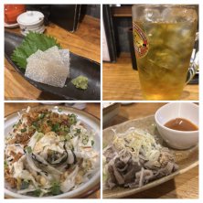 前日やらかして この日は緑茶大です 焼酎は入っておりません😑 センマイ刺し 塩昆布コールスロー 店長より 子持ちこんにゃく ↑これ何とも言えない食感で私は好き😊 自分でもお取り寄せしたいくらい そのうちメニューに載るのかな