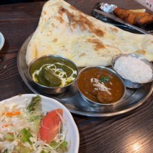 野菜カレー、チーズナン、サラダ🐱 ごろごろ野菜が入ってて美味しい♪