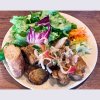 近所で姪っ子とクリスマス向けフラワーアレンジメントのワークショップ&ランチ 野菜タップリのサラダの真ん中にローストチキン。この後チーズリゾットで豪華ランチ。いつもはランチのお手伝いをしている方が経験を活かして、中学生にもわかり易く教えてくれたので姪っ子は大満足。