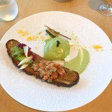 伊東産の真鯖、西浦のレモン、菊芋、ソース2種類。すごいー