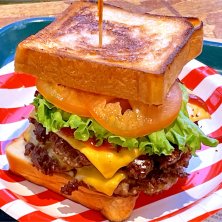 関東に数店舗有るハンバーガーの店、BAKERY&BURGER JB's TOKYOのJB'sスペシャル。選べるパンの中に牛肉100%の粗挽きパティーが2枚、チーズが2枚、レタス、トマトが2枚とケチャップを挟んだハンバーガーでこの店の人気メニュー。選べるパンは食パンか丸パンから選べる。この店は食パンから自家製で作る事に拘っていたので、食パンにする事に。食べづらい面も有ったが、食パンのふわふわ食感が、中の具を引き立ててくれて美味かった。ビーフも肉の味がしっかりとあった。