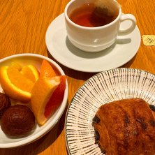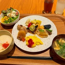 ホカンス☻ ビュッフェ休止中の朝食御膳🍴 ご飯かパンを選べてお替り自由、更に変更も自由🍚🥐